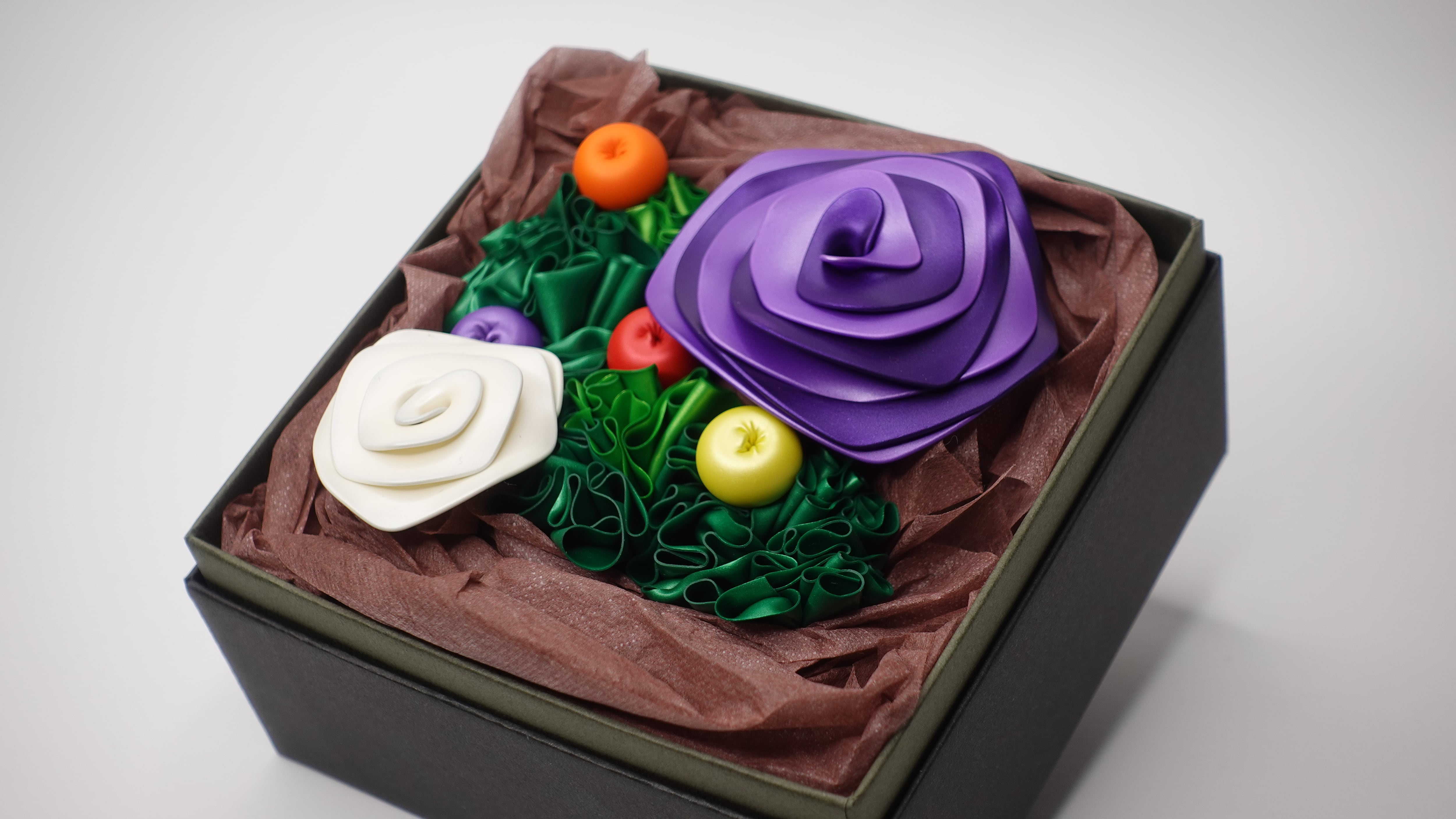 【膨らませないバルーンアート】のバルーンフラワーという技法を用いた、フラワーボックス風のオリジナルギフトです。